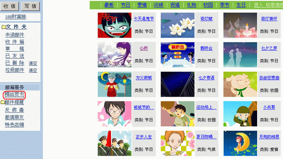 126 邮箱为您提供了丰富多彩的贺卡,通过写信页面上的链接可以到达贺卡发送页面,在这儿可以给您的亲朋好友和爱人发送最真心的祝福!